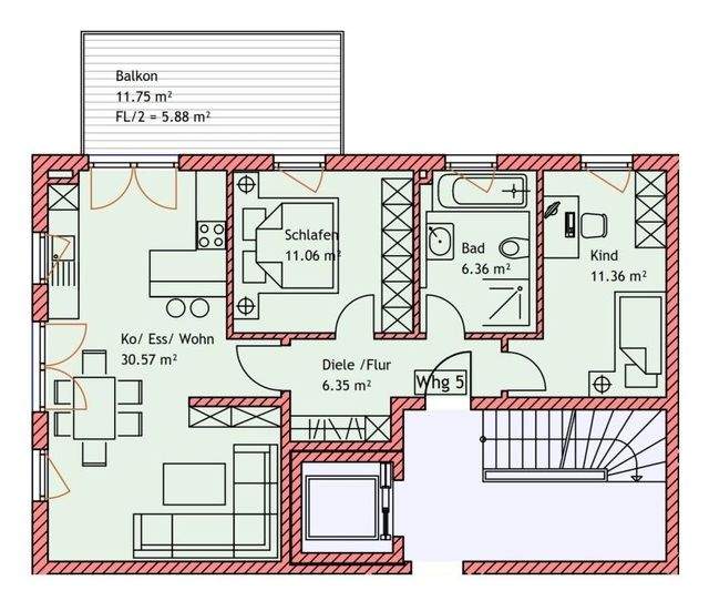 - Balkon nach Osten ausgerichtet, mit ca. 11,75 m² Grundfläche