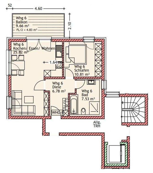 - Balkon mit ca. 9,66 m² Grundfläche nach Westen ausgerichtet
