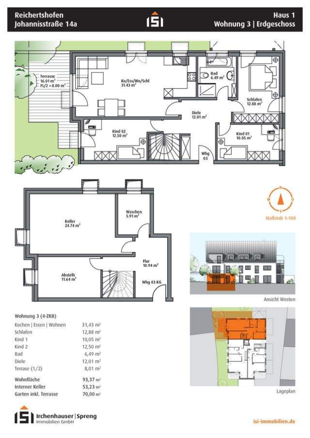 Bei der angebotenen Wohnung handelt es sich um eine 4-Zimmer Wohnung im Erdgeschoss, sowie einem internen Hobbykeller (3 Räume) mit ca. 53 m².