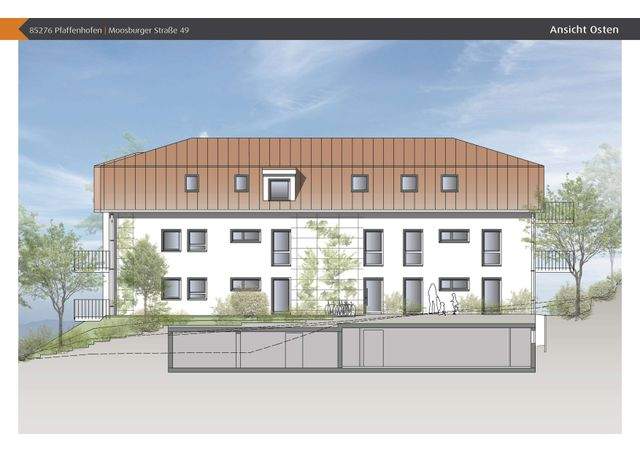 Bei der angebotenen Wohnung handelt es sich um eine Neubau 3-Zimmer Wohnung im 1. Obergeschoss, mit einem Balkon (ca. 9,90 m² Grundfläche) nach Osten, Süden und Westen ausgerichtet in zentraler Lage von Pfaffenhofen.