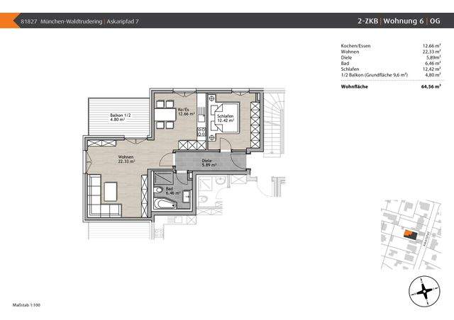 Carport vorhanden, Stellplatz vorhanden, Nutzfläche: 76,70 m², Anzahl der Schlafzimmer: 1, Anzahl der Badezimmer: 1, Anzahl Balkone: 1, Balkon-Terrassen-Fläche: 9,60 m², Bundesland: Bayern, 2 Etagen